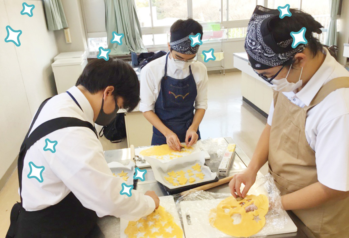 ・校内掲示物作成、調理実習、皮革作品製作