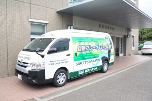 自動ブレーキVR体験では、実際の自動車の自動ブレーキがどういうものかを全員が体験しました。