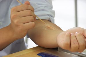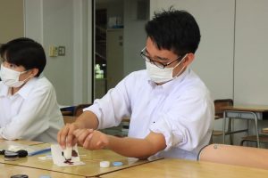 当日は、実際に特撮や映画で使用する傷メイクを実際に自身の腕で挑戦しました。