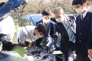 11月に神奈川県横浜市旭区にある日産自動車大学校が【電気自動車とガソリン車の違い・自動駐車機能体験】について実際の車を使用し講座を行いました。