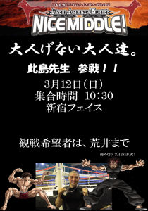 3月12日(日) 新宿FACEにて行われる「NICE MIDDLE 62」に此島先生が参戦いたします。