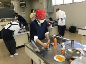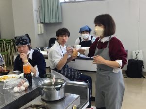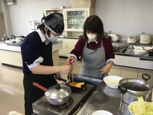 福祉セレクトを受講している生徒に調理実習で卵焼きや切り干し大根などの和食の作り方を教えてくださいました。