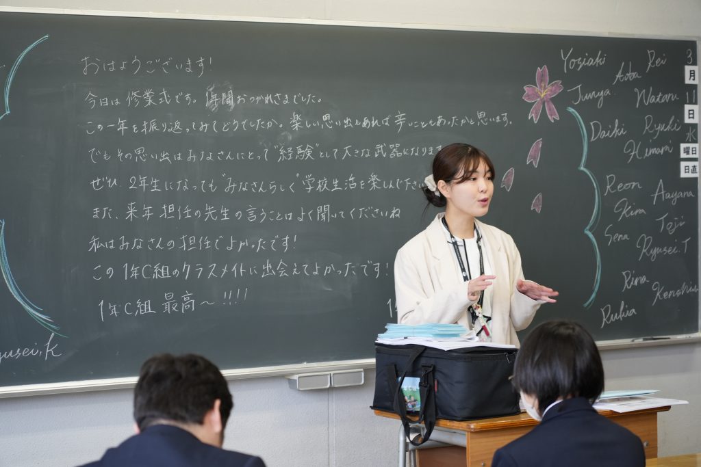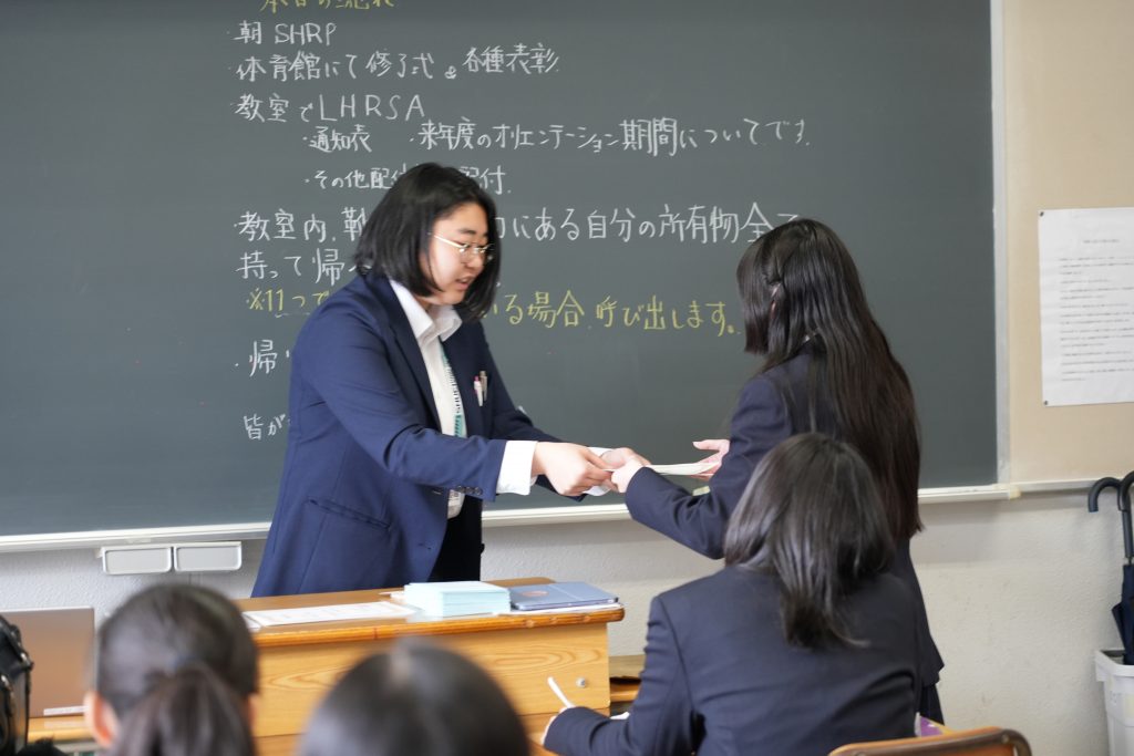 その後、各ホームルームでは、配布物を手渡したり、春休みの過ごし方についての話がありました。